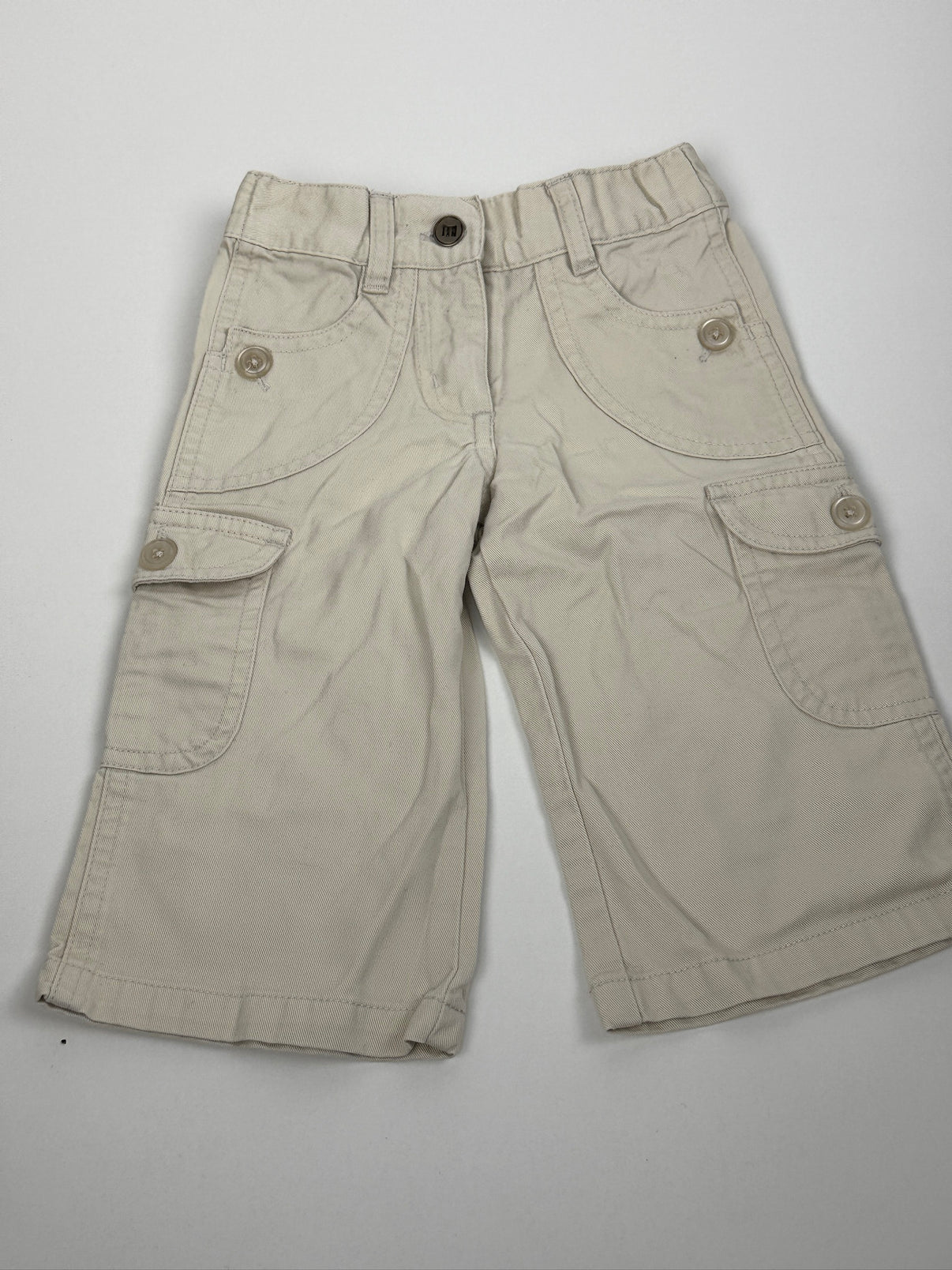 Pohodlné chlapecké tříčtvrteční kalhoty Miss.M ve velikosti 98 v béžové barvě jsou ideální volbou na jaro a léto. Mají praktické kapsy na bocích i na stehnech, zapínání na knoflík a pružný pas pro snadné oblékání. Díky neutrální barvě se skvěle kombinují s barevnými tričky i mikinami a hodí se jak do školky, tak na hřiště nebo výlet do přírody.