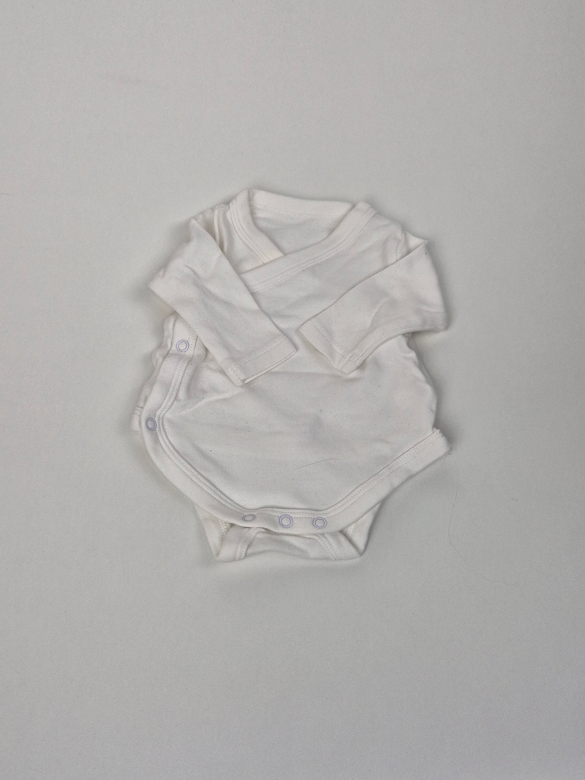 Jednoduché zavinovací body C&A ve velikosti 50, ideální pro novorozeně. Vyrobené z měkké bílé bavlny, která je šetrná k citlivé dětské pokožce. Praktické zapínání po celé délce i mezi nožkami...