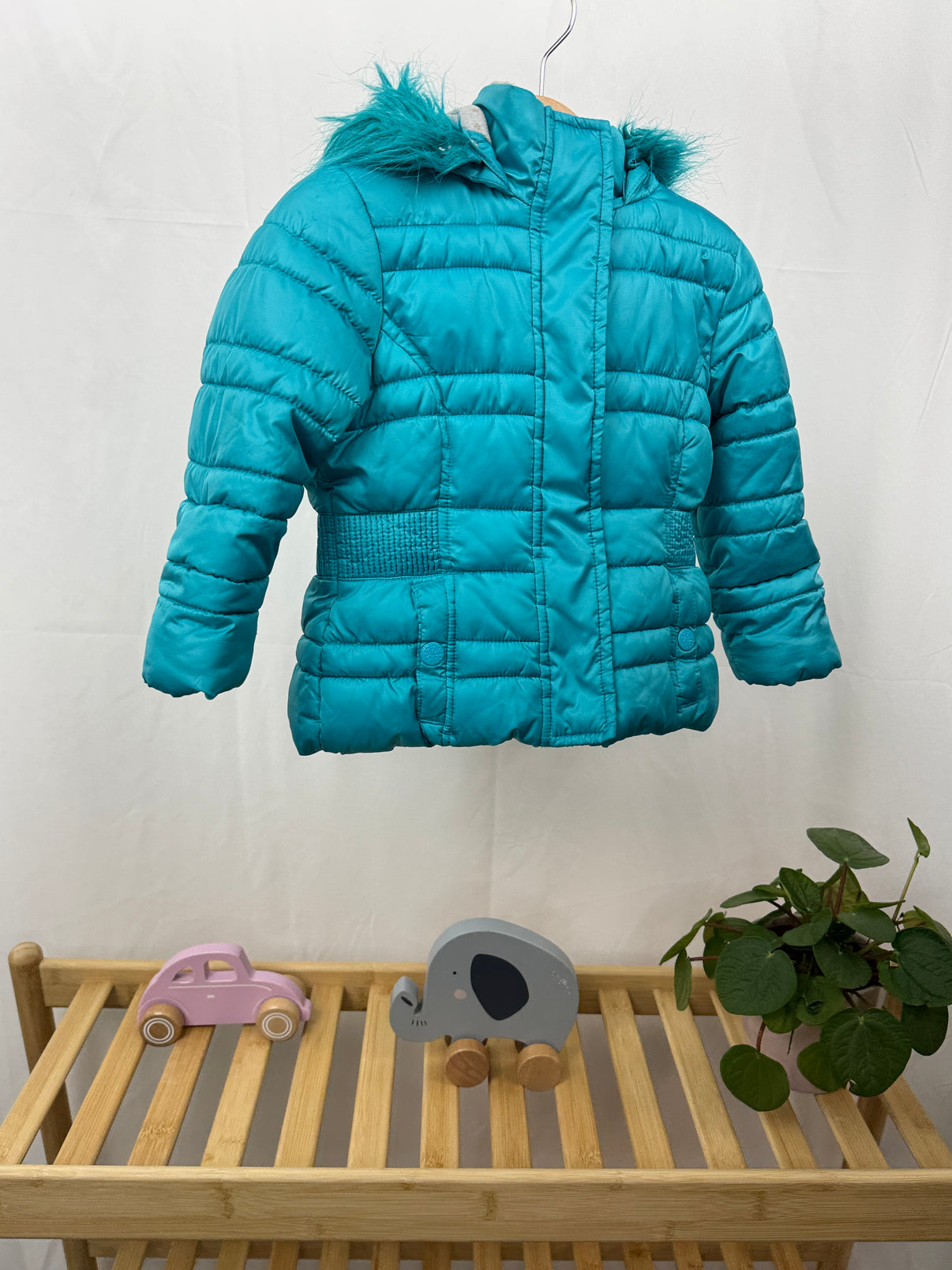 Teplá zimní bunda značky Palomino v tyrkysové barvě, ideální pro chladné dny. Bunda má kapuci zdobenou odnímatelnou kožešinkou a příjemnou fleecovou podšívku, která zajišťuje maximální pohodlí. Elastický pas poskytuje skvělé přizpůsobení a pohodlné nošení. Bunda se zapíná na zip krytý légou na druky pro extra ochranu proti větru. Perfektní volba pro holčičky ve velikosti 92, která spojuje funkčnost a styl do zimního počasí.