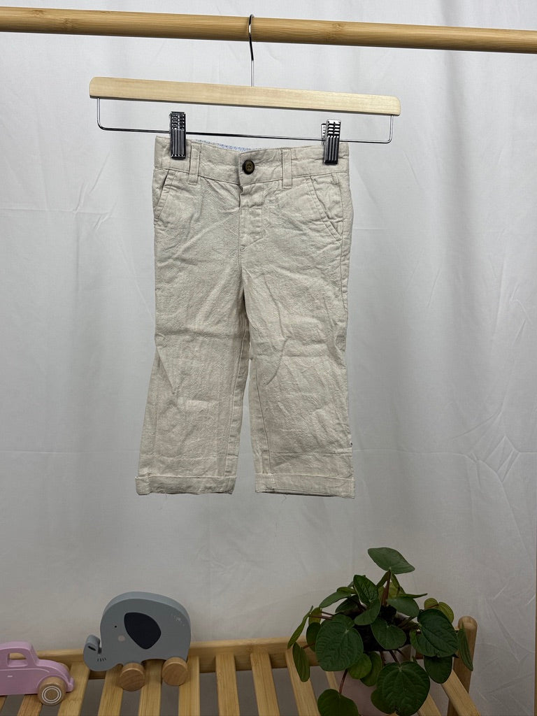 Stylové béžové kalhoty s příměsí lnu značky Marks & Spencer ve velikosti 83 jsou skvělou volbou pro pohodlné a zároveň elegantní nošení. Díky lněné příměsi jsou kalhoty lehké, prodyšné a ideální pro teplejší dny. Mají klasický design s předními kapsami a zapínáním na knoflík, což dodává kalhotám sofistikovaný vzhled. Perfektní volba na rodinné oslavy, focení nebo jiné příležitosti, kde chcete zajistit pohodlí i styl. Snadno je zkombinujete s košilí, polokošilí nebo tričkem. Skvělý univerzální kousek do šatníku každého malého elegána!
