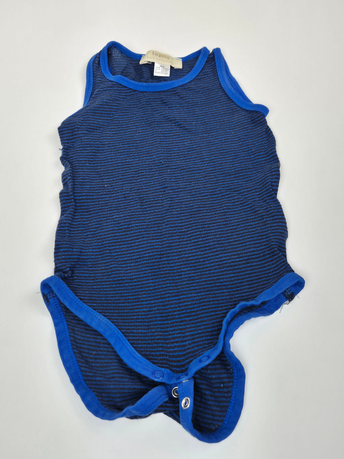Pohodlné bavlněné body Lupilu bez rukávů v tmavě modré barvě s jemným proužkováním. Lehký a prodyšný materiál je ideální do teplejších dnů nebo jako spodní vrstva pod mikinu či svetřík....