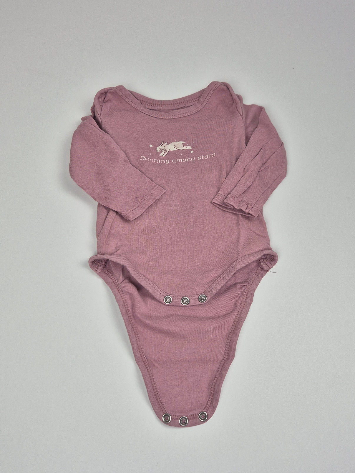 Pohodlné body s dlouhým rukávem v tlumeném starorůžovém až mauve odstínu, který působí jemně, ale zároveň prakticky na každodenní nošení. Barva má lehce zaprášený tón, takže se dobře kombinuje s neutrálními i pastelovými kousky. Na hrudi je drobný bílý potisk s motivem a nápisem „Running among stars“, který dodává body něžný detail.