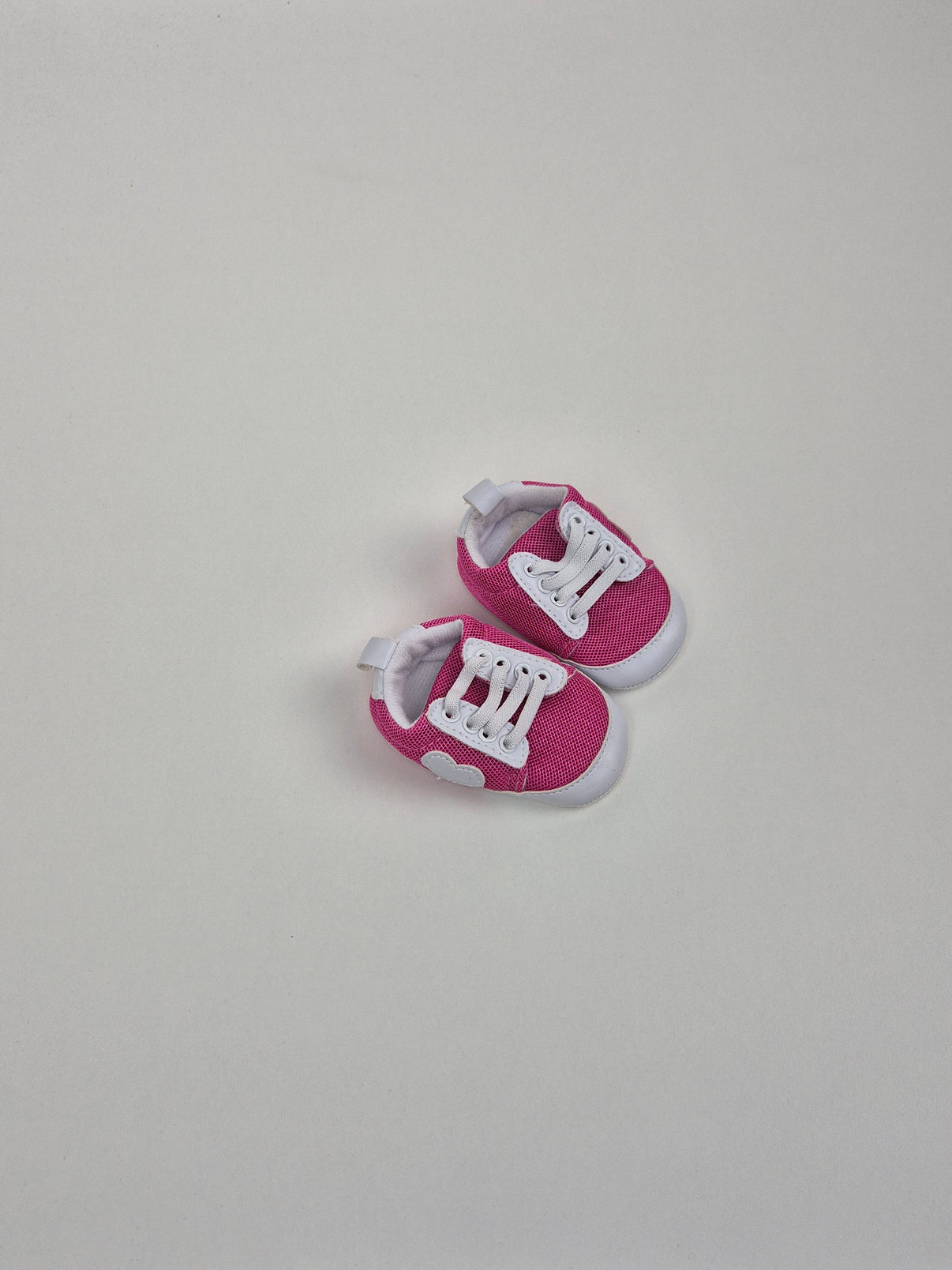 Roztomilé capáčky ve výrazné růžové barvě s bílými detaily, které připomínají malé tenisky. Lehký textilní materiál je měkký a pohodlný, ideální pro nejmenší děti, které ještě nechodí. Pružná patička usnadňuje obouvání a pomáhá capáčkům držet na nožičkách, bílá podrážka je měkká a neklouže. Malé srdíčko na boku dodává capáčkům hravý a něžný detail.