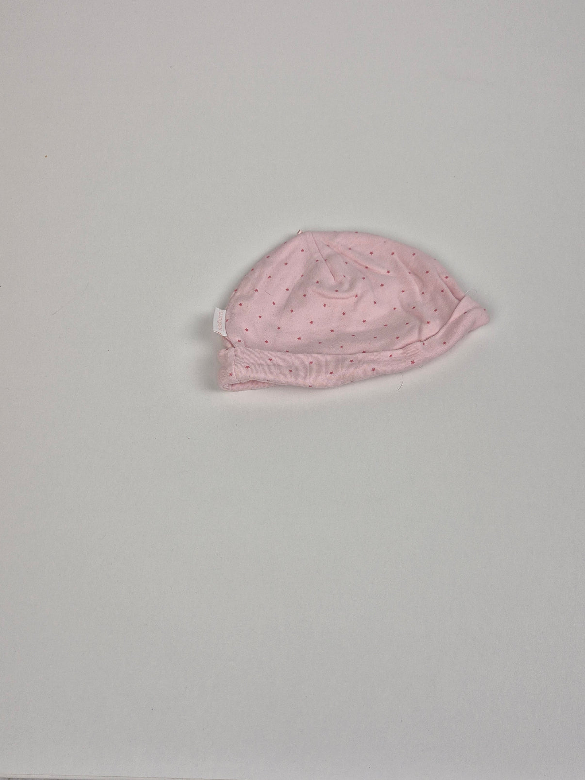 Jemná bavlněná čepička F&F v světle růžové barvě s drobným vzorem tmavě růžových puntíků. Vyrobená z měkkého a prodyšného materiálu, ideální pro novorozence a miminka. Pružný lem zaručí, že čepička...