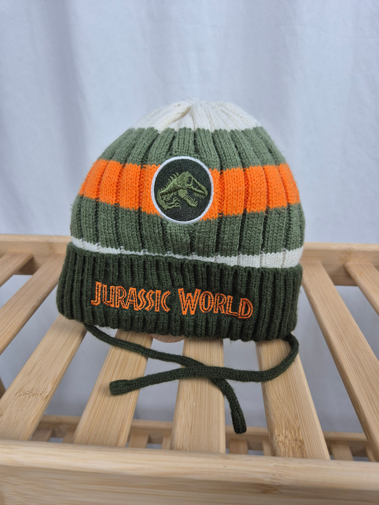 Stylová dětská zimní čepice Pepco – Jurassic World potěší všechny malé fanoušky dinosaurů! Čepice je pletená v pruhovaném vzoru v odstínech tmavě zelené, oranžové a krémové, doplněná o vyšitý motiv...