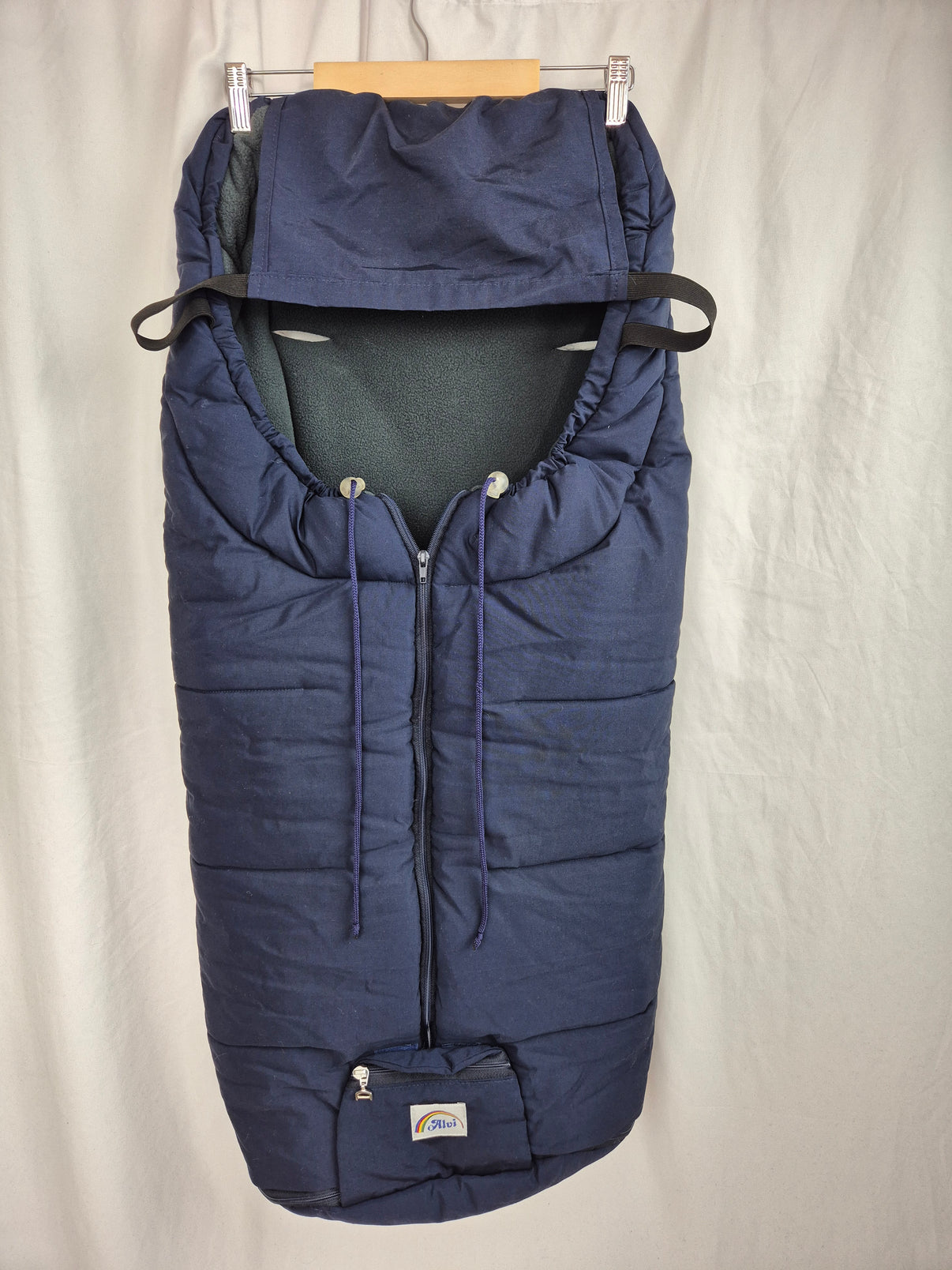 Tmavě modrý zimní fusak Alvi je skvělým parťákem do kočárku na chladné měsíce. Vnější pevnější vrstva chrání před větrem i chladem, zatímco vnitřní fleecová podšívka udržuje miminko krásně v teple...