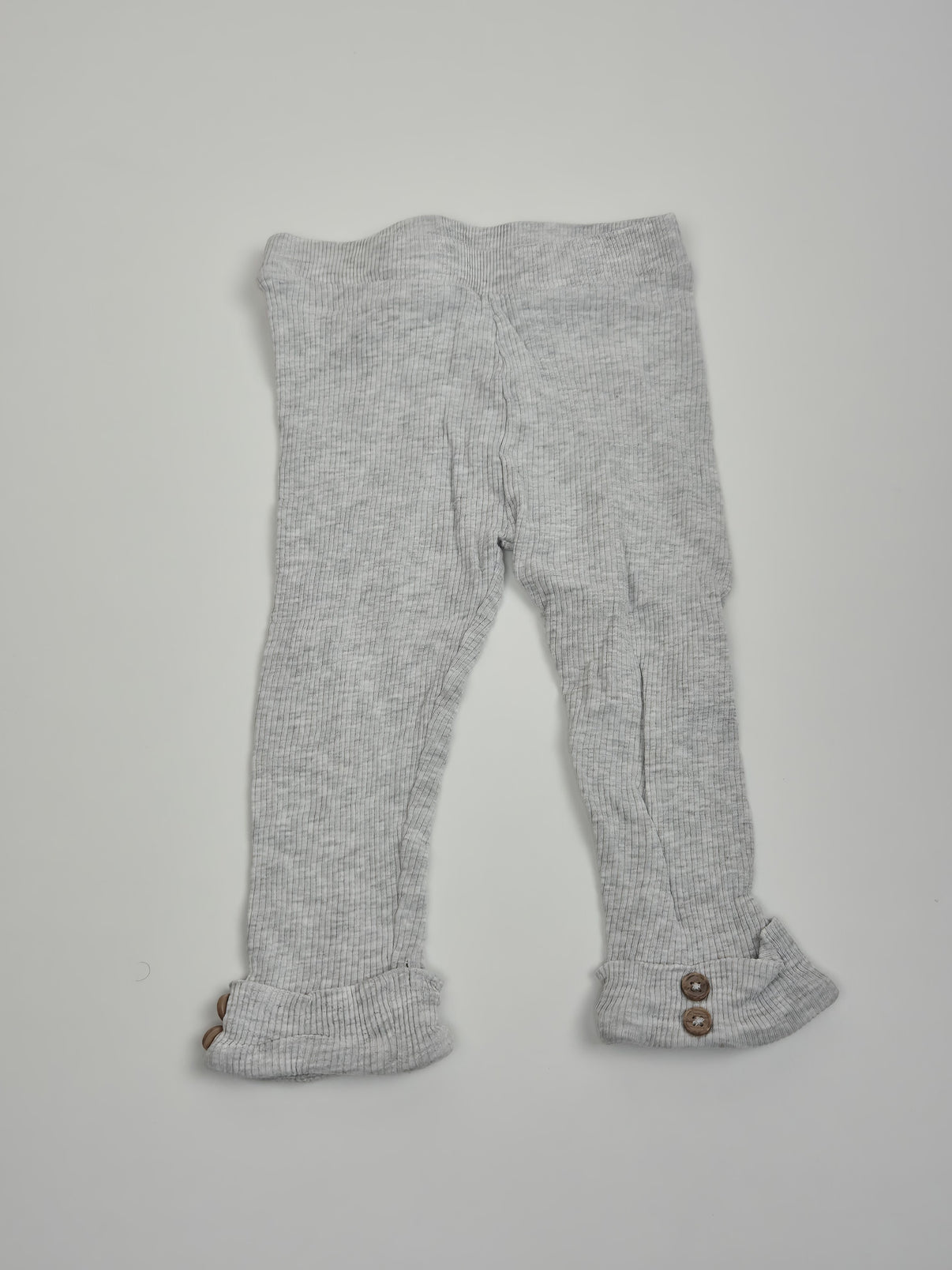 Pohodlné dětské legíny v světle šedém melírovaném odstínu s jemným žebrovaným vzorem, který působí moderně a zároveň nadčasově. Spodní část nohavic je ozvláštněna dekorativními knoflíčky, které dodávají legínám hezký detail. Měkký a pružný materiál se přizpůsobí pohybu a zajistí pohodlí při celodenním nošení.