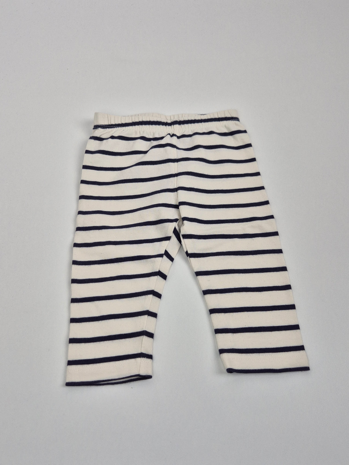 Pohodlné bavlněné legíny v krémově bílé barvě s tmavě modrými proužky v nadčasovém námořnickém stylu. Měkký, pružný materiál je ideální pro miminka – příjemný na pokožce a vhodný na celodenní...