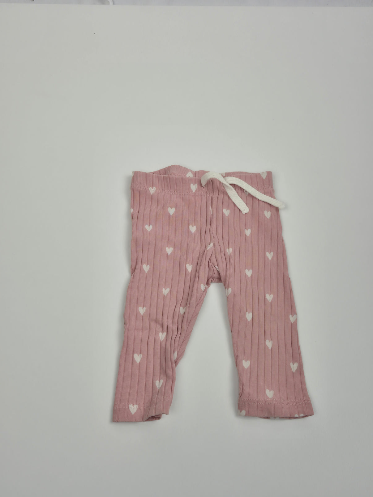Roztomilé legíny v pudrově růžovém odstínu s jemným žebrovaným vzorem a drobnými bílými srdíčky po celé ploše. Barevně působí něžně a hravě, ideální do miminkovského šatníku.