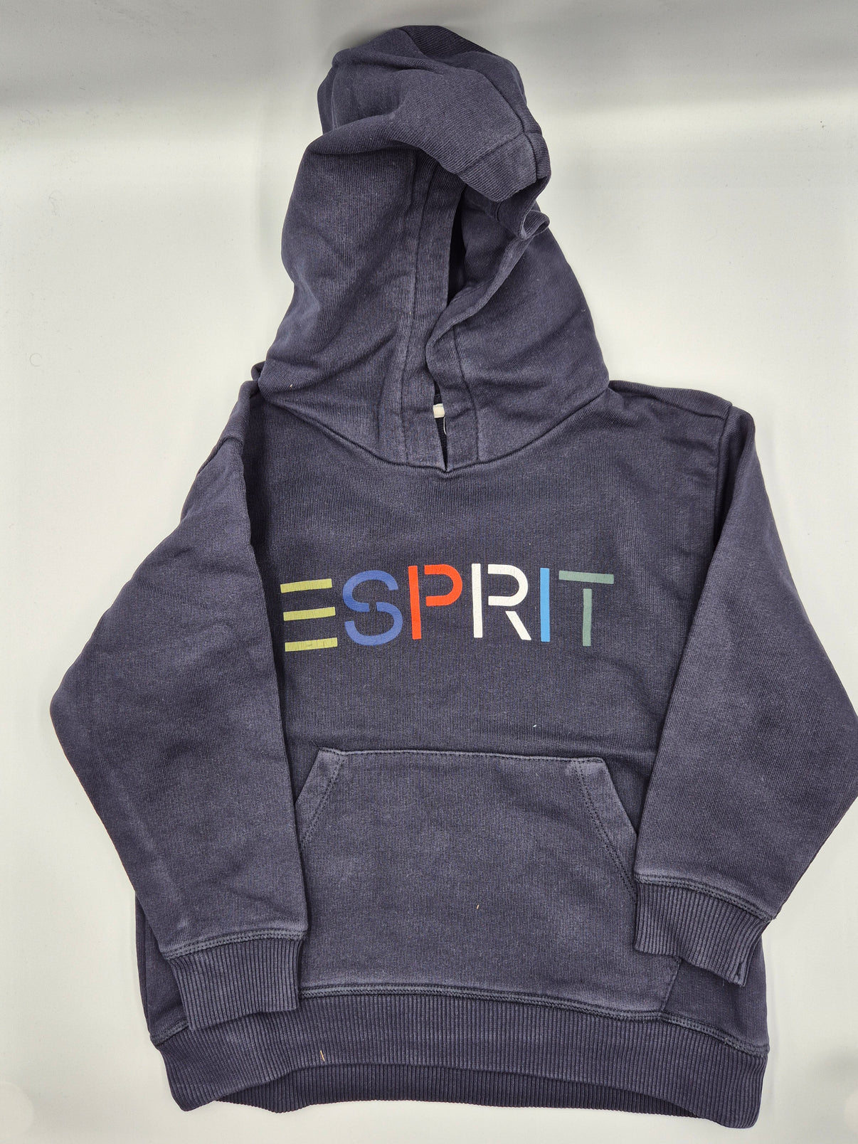 Dětská mikina s kapucí Esprit ve velikosti 104/110 v krásném tlumeném odstínu tmavé šedomodré.  Na přední straně zaujme výrazné barevné logo „ESPRIT“ v kombinaci zelené, modré, oranžové a světle šedé....