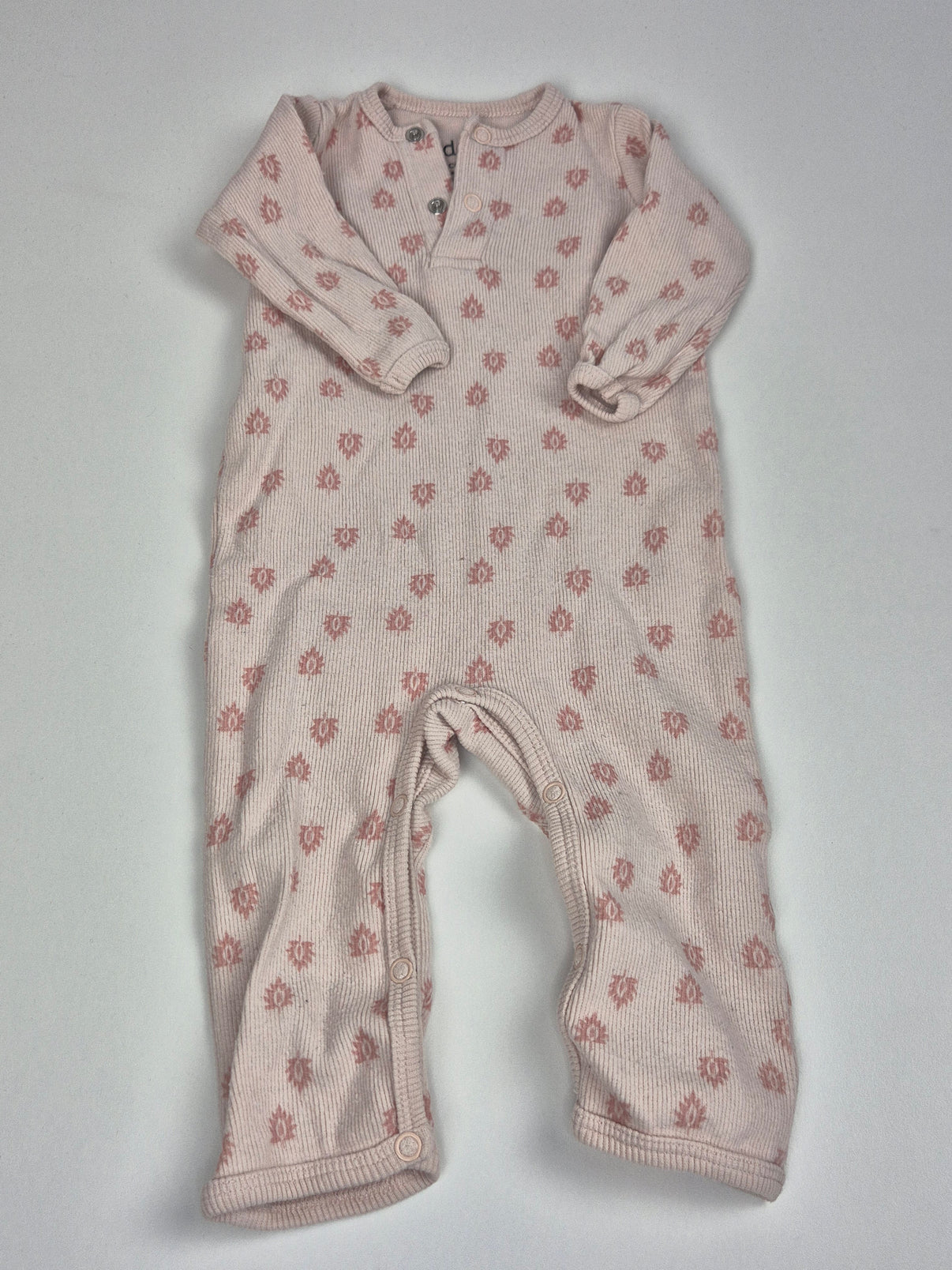 Měkoučký a velmi pohodlný overal značky Lodger, ideální pro celodenní nošení i spánek. Je vyroben z žebrované bavlny, která je příjemná na dotek a dobře se přizpůsobí pohybu miminka. Jemný pudrově růžový podklad zdobí drobný rostlinný vzor v tlumené růžové, díky kterému působí overal něžně a holčičí. Praktické zapínání na patentky od nohaviček usnadní přebalování a knoflíčky u krčku zase oblékání. Skvělý kousek do kočárku i na doma.