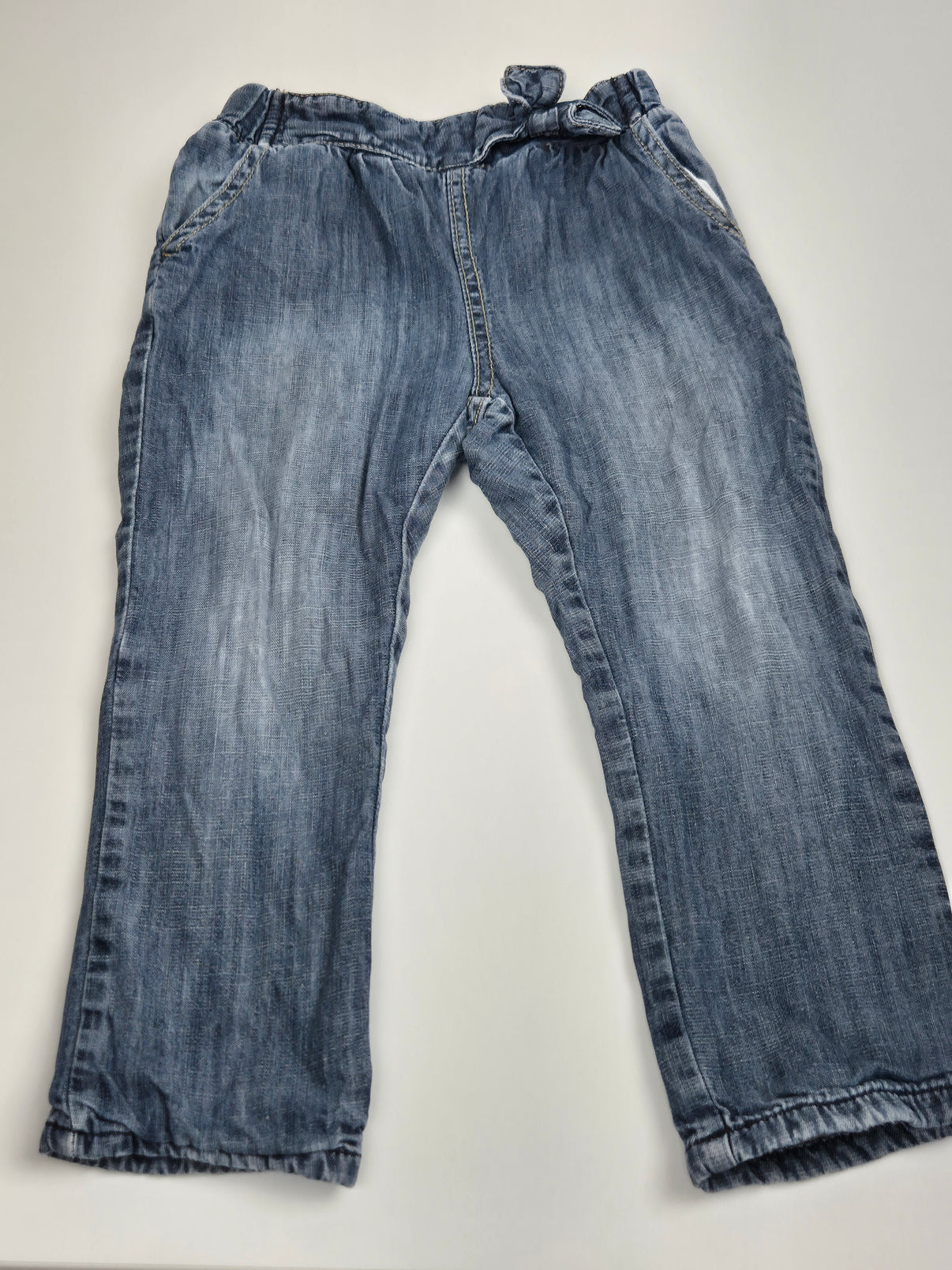Klasické dětské džíny v středně modré denimové barvě s jemným vyšisováním, které jim dodává ležérní vzhled. Uvnitř jsou měkce podšité, takže krásně zahřejí v chladnějších dnech – ideální na podzim, zimu i brzké jaro, do školky i na venkovní procházky.
