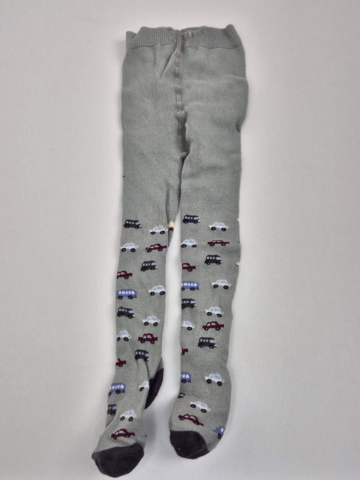 Dětské punčocháče KiK ve velikosti 74/80 v neutrálním šedém odstínu s drobným celoplošným motivem autíček. Kombinace šedého základu s barevnými detaily v červené, modré, bílé a černé působí hravě, ale zároveň nenápadně – ideální na každodenní nošení.