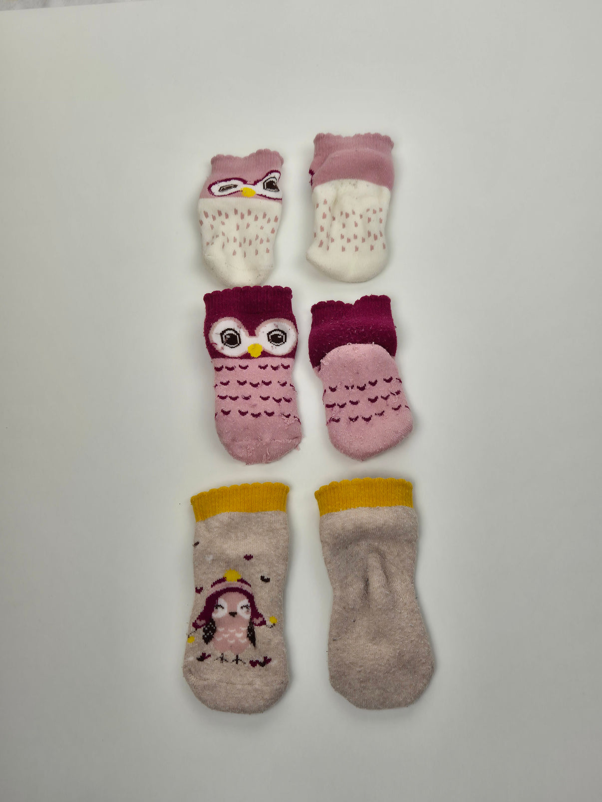 Tři párů měkkých ponožek s roztomilým motivem sovičky jsou ideální pro vaše miminko. Sada obsahuje tři různobarevné páry v ideální velikosti 68/80, které se pohodlně vejdou do botiček i do spacího pytle. Ponožky jsou vyrobeny z příjemného materiálu, který je jemný na citlivou dětskou kůži. Perfektní volba pro každodenní nošení i jako dárek pro novorozence a malé děti.