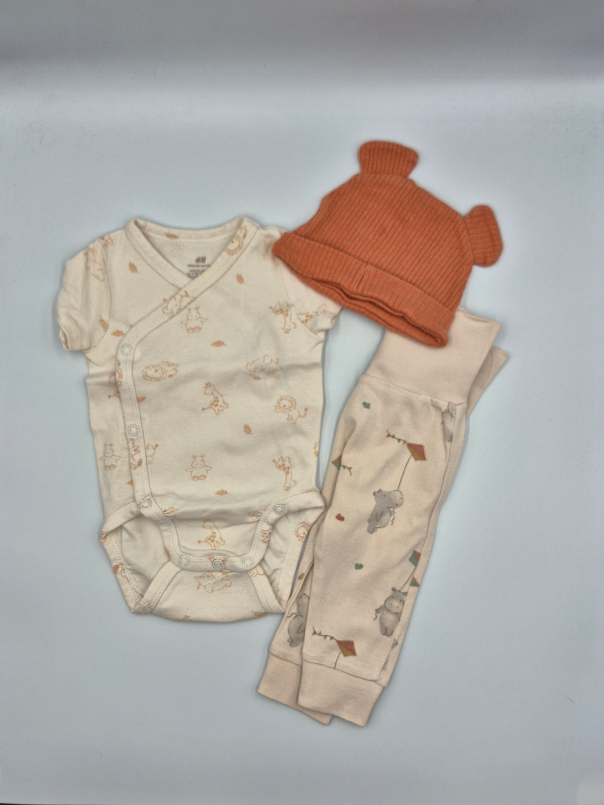 Třídílný set pro miminko obsahuje pohodlné body, měkkou čepici a elastické legíny. Ideální kombinace pro každodenní nošení od narození. Materiál je jemný na citlivou pokožku a umožňuje volný pohyb. Sada v velikosti 62 je perfektní pro novorozence a zajišťuje teplo i pohodlí během celého dne.
