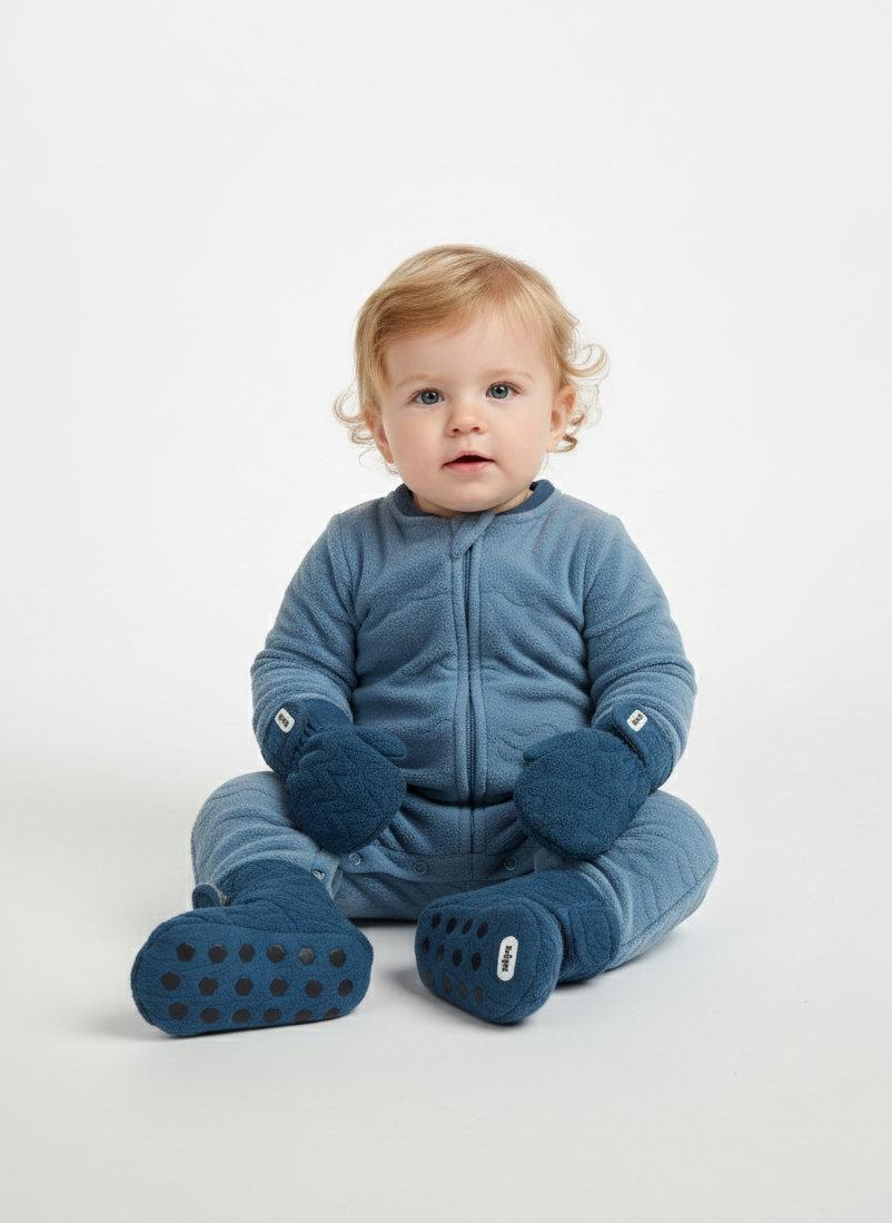 Roztomilý set capáčků a rukaviček značky Lodger ve velikosti 80 je ideální volbou pro malé dobrodruhy do kočárku i na první krůčky. 💙