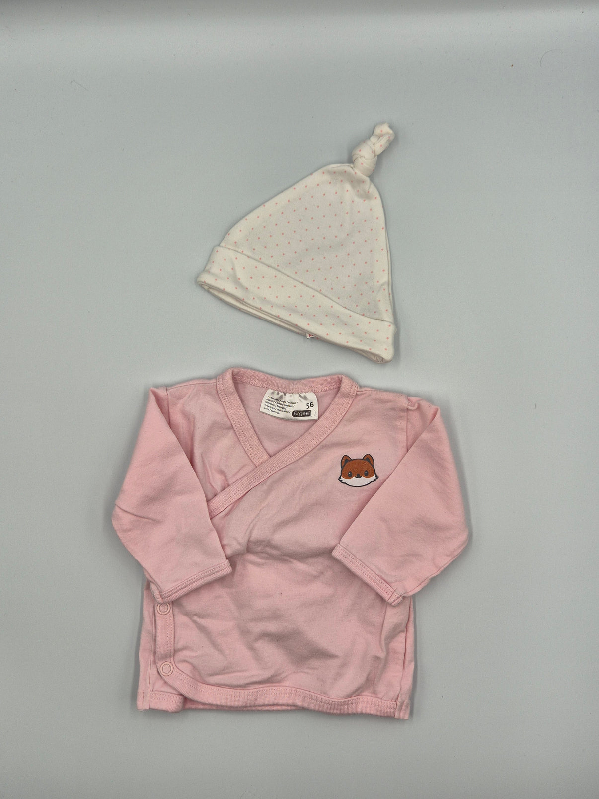 Roztomilý set obsahující tričko a čepici v velikosti 56 – ideální pro nejmenší miminko. Měkké, pohodlné materiály zajistí maximální pohodlí během celého dne. Praktická kombinace dvou základních kusů, které se skvěle hodí k sobě a usnadňují oblékání. Dokonalý dárek pro novorozence nebo malého miminka, které potřebují kvalitní a stylové oblečení. Jednoduchá péče a dlouhodobá nositelnost.