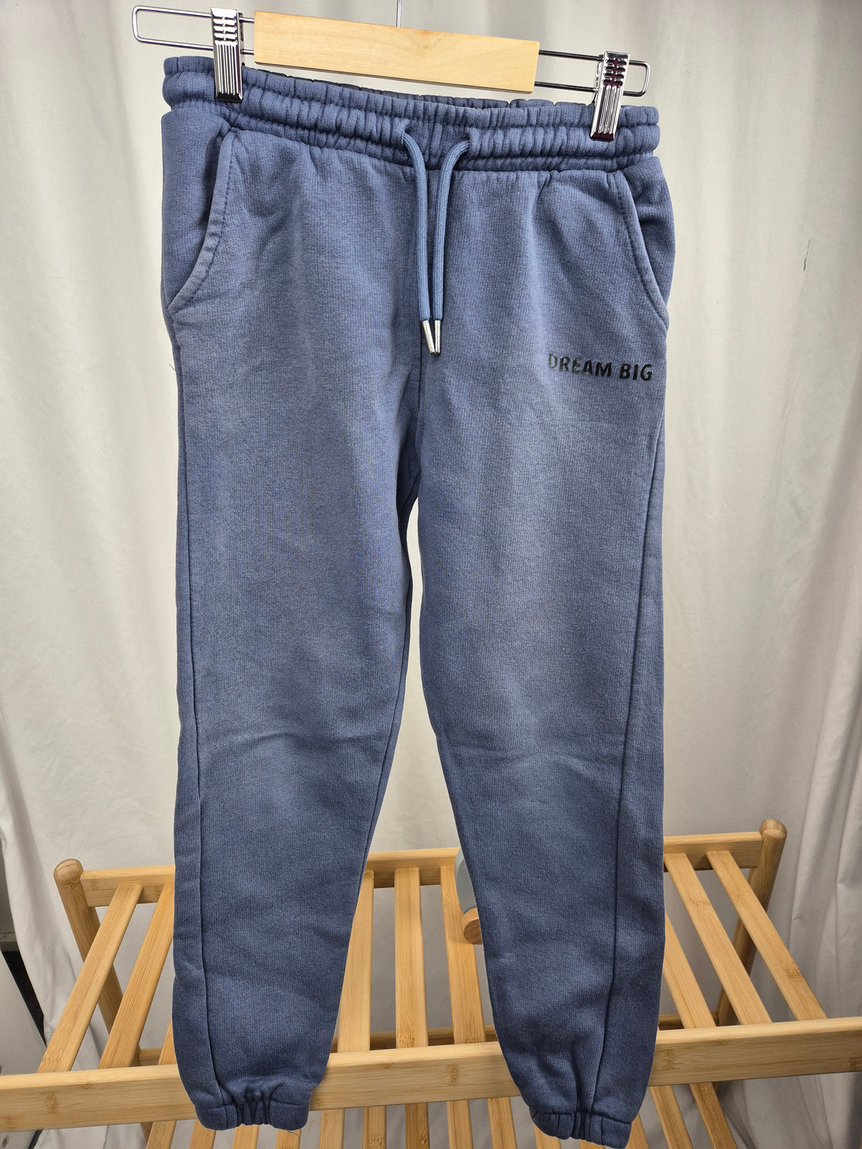 Pohodlné tepláky v klasickém modrém odstínu, který je praktický a snadno kombinovatelný. Jednoduchý design doplňuje nenápadný nápis „Dream Big“ na nohavici, který dodává teplákům moderní, sportovní vzhled.