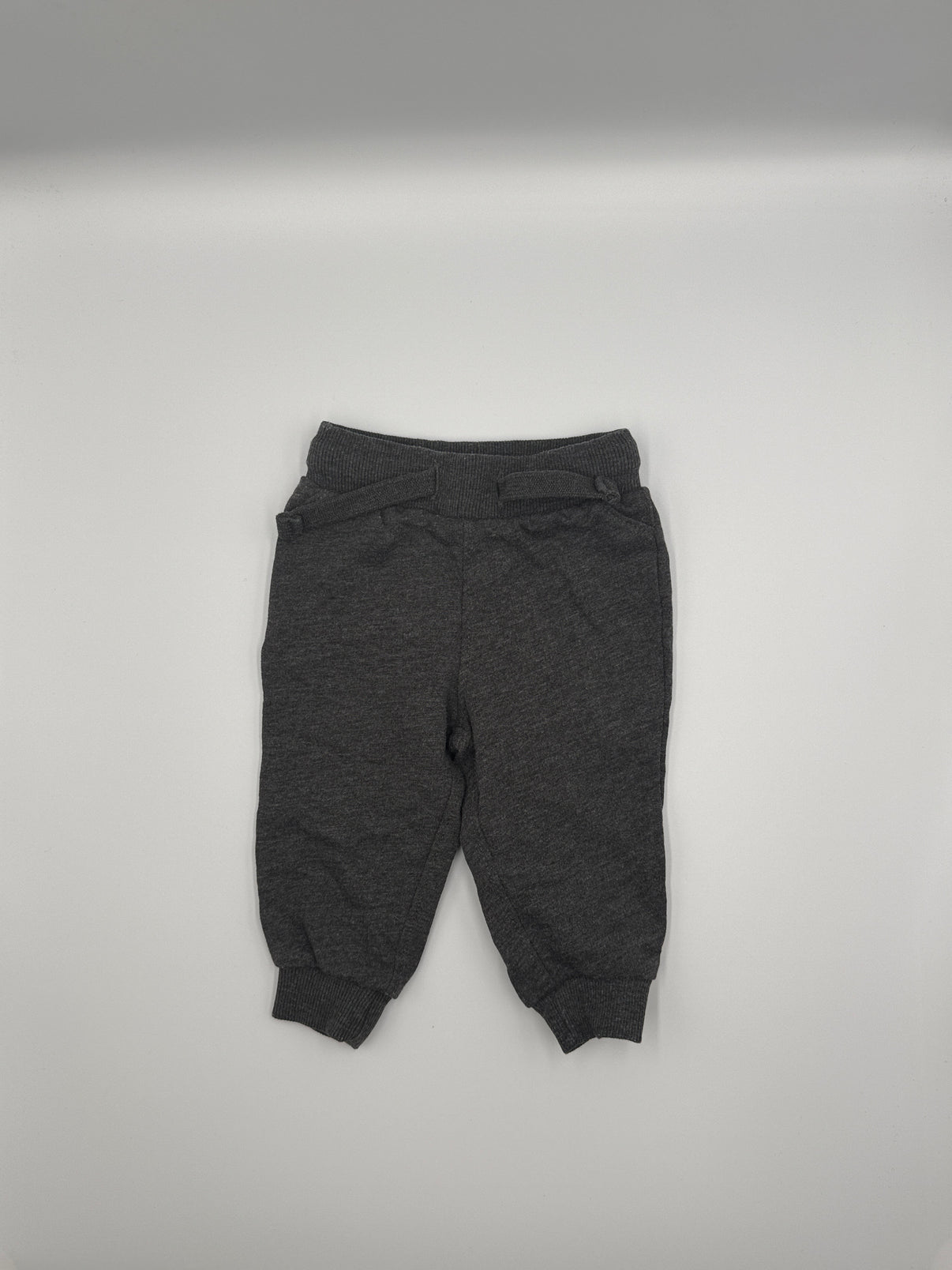 Tmavě šedé tepláky v jemném melíru, které se skvěle hodí na každodenní nošení. Měkký a pohodlný materiál je ideální na hraní doma, do kočárku i na procházky. Pružný pas se šňůrkou dobře drží, nikde netlačí a žebrované lemy na nohavicích zajistí, že tepláčky zůstanou na místě i při pohybu.