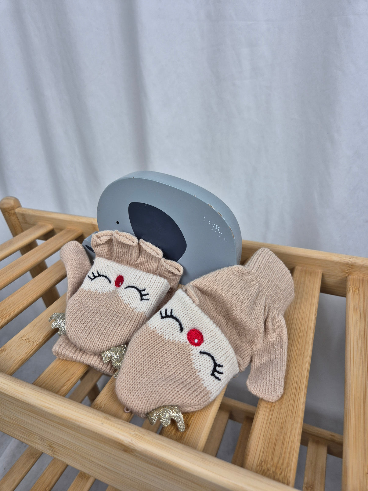 Roztomilé vánoční rukavice Pepco v béžové barvě s motivem sobíka a červeným čumáčkem krásně doladí zimní outfit. Pletený materiál je měkký a hřejivý, ideální pro zimní dny nebo vánoční focení....